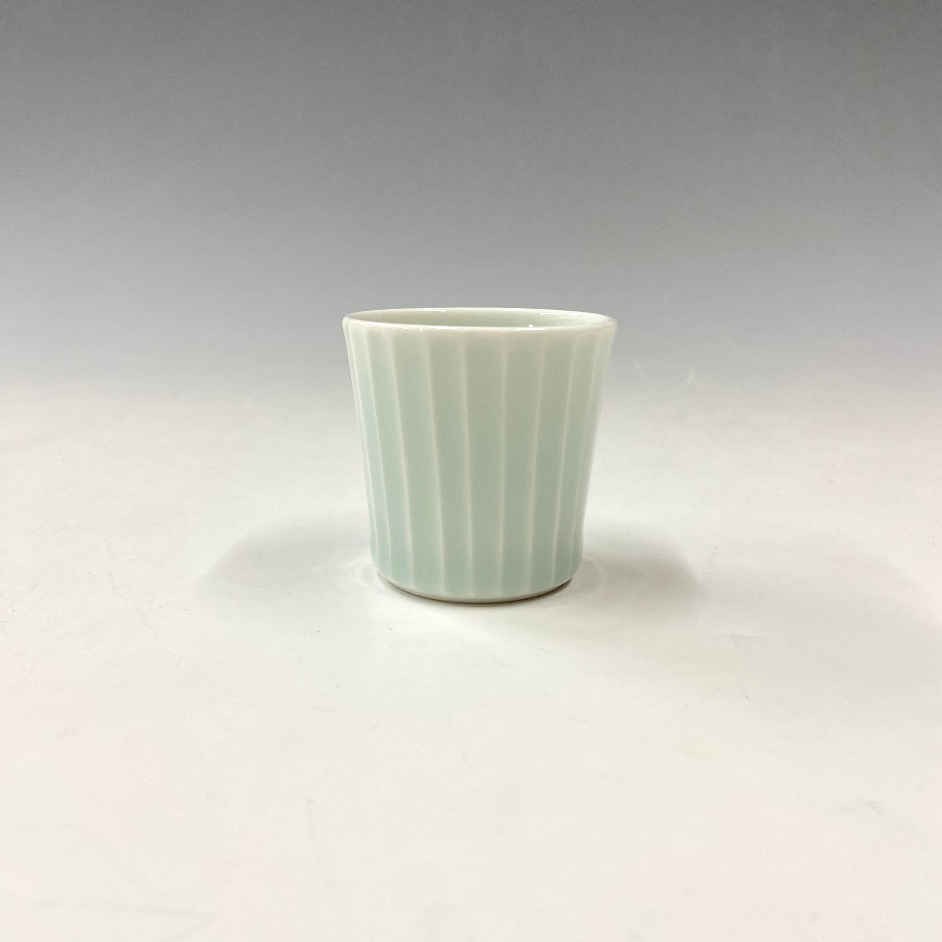 青白磁釉の陰影がとてもキレイで、手仕事による技術と繊細さを感じられる作品です。