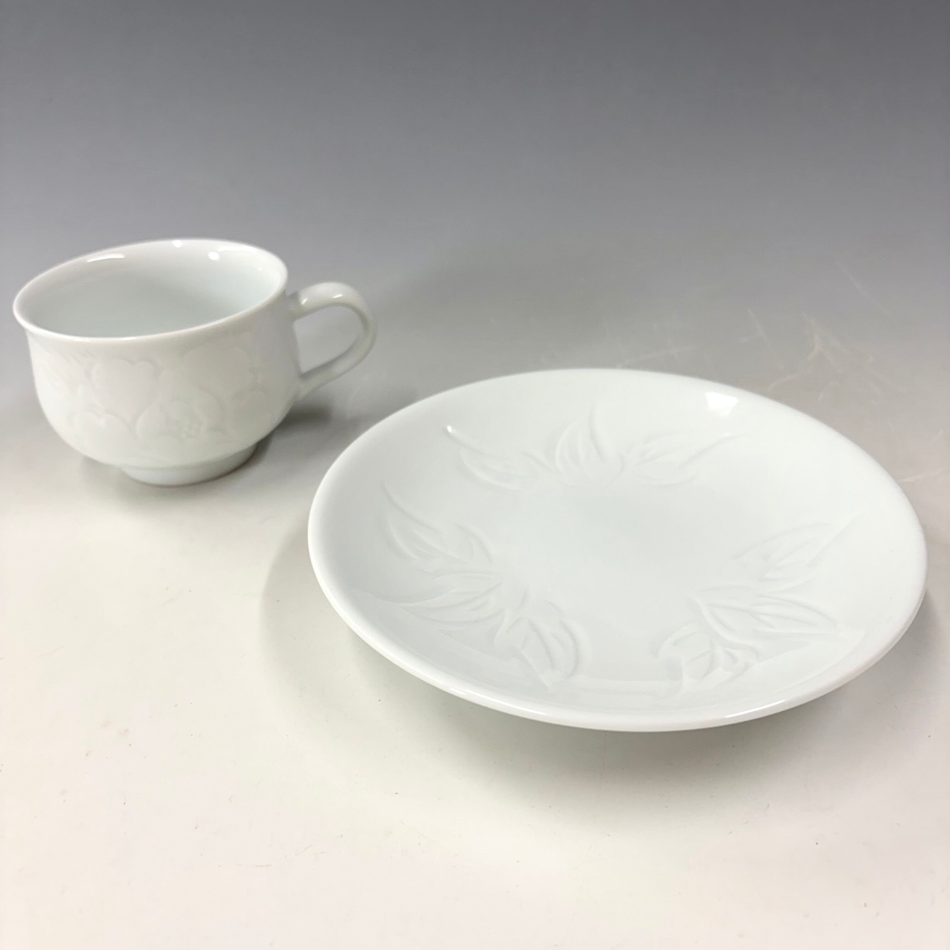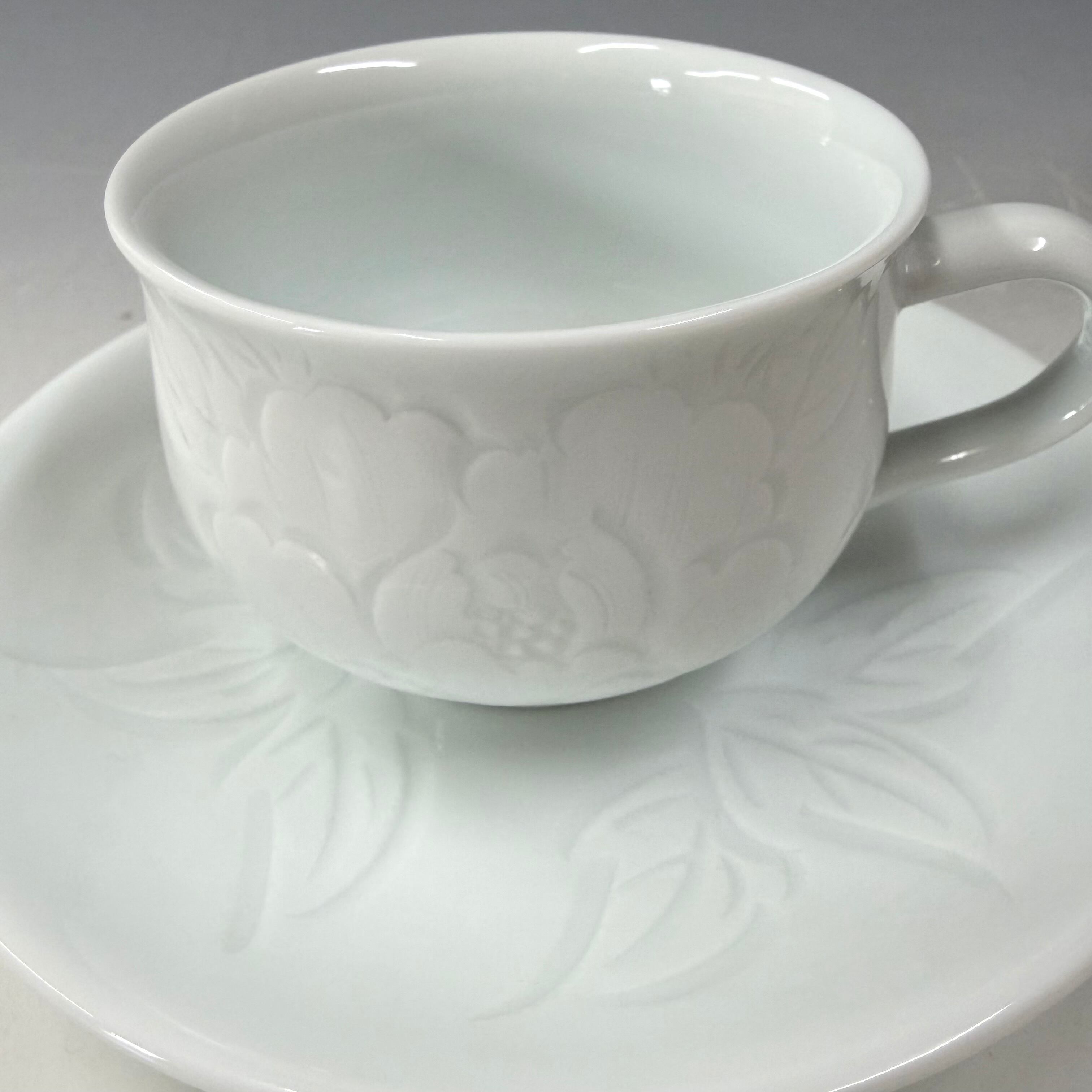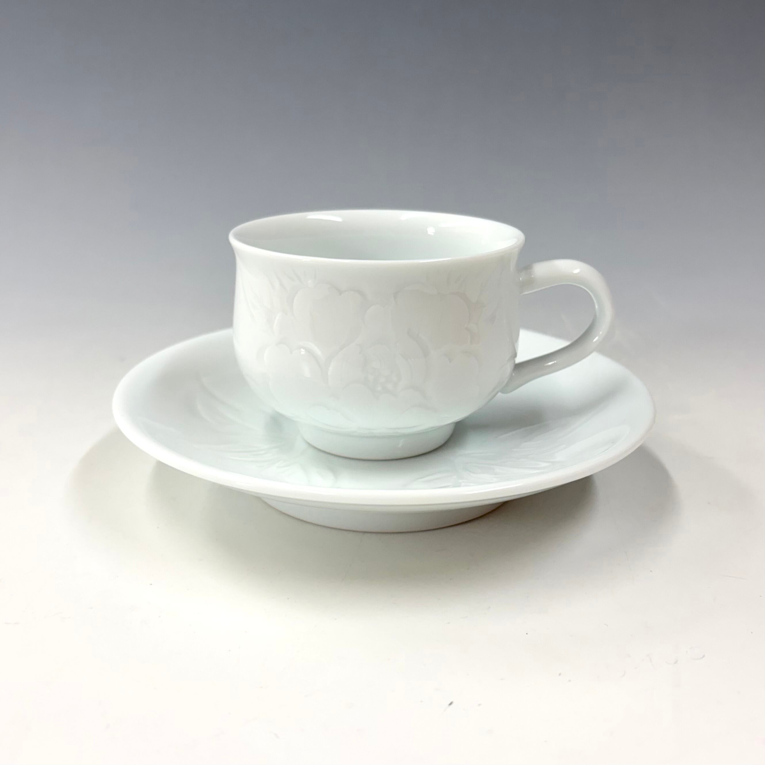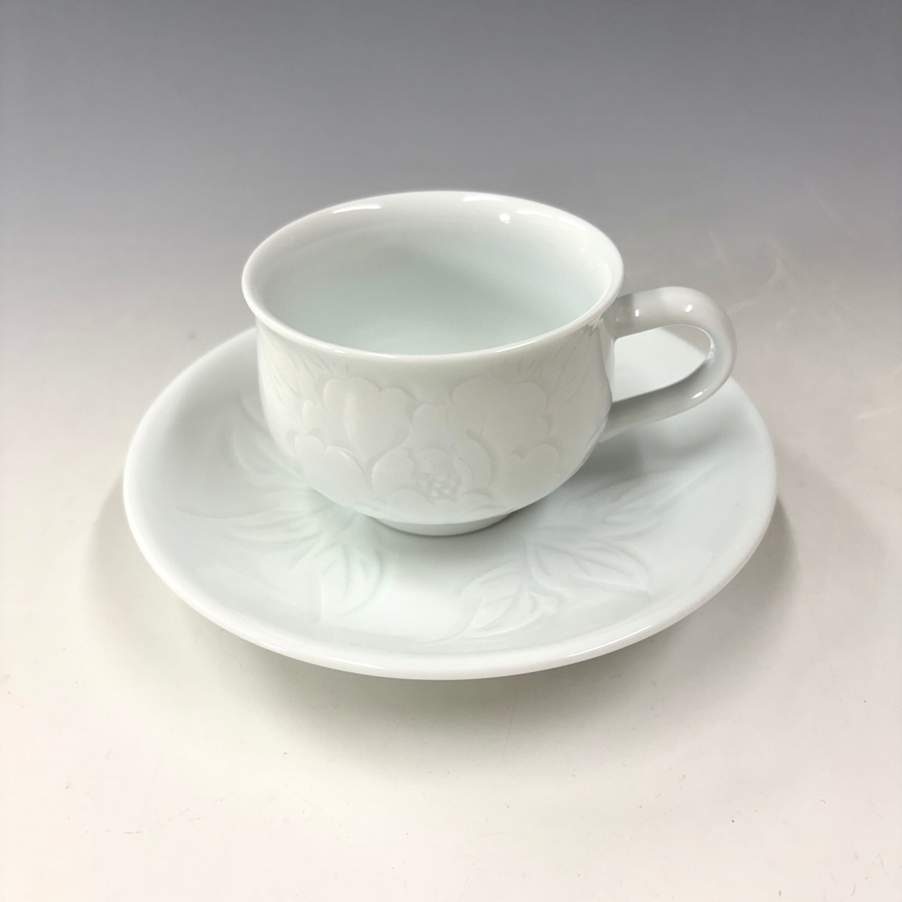 【中尾恭純】白磁牡丹彫珈琲碗皿
