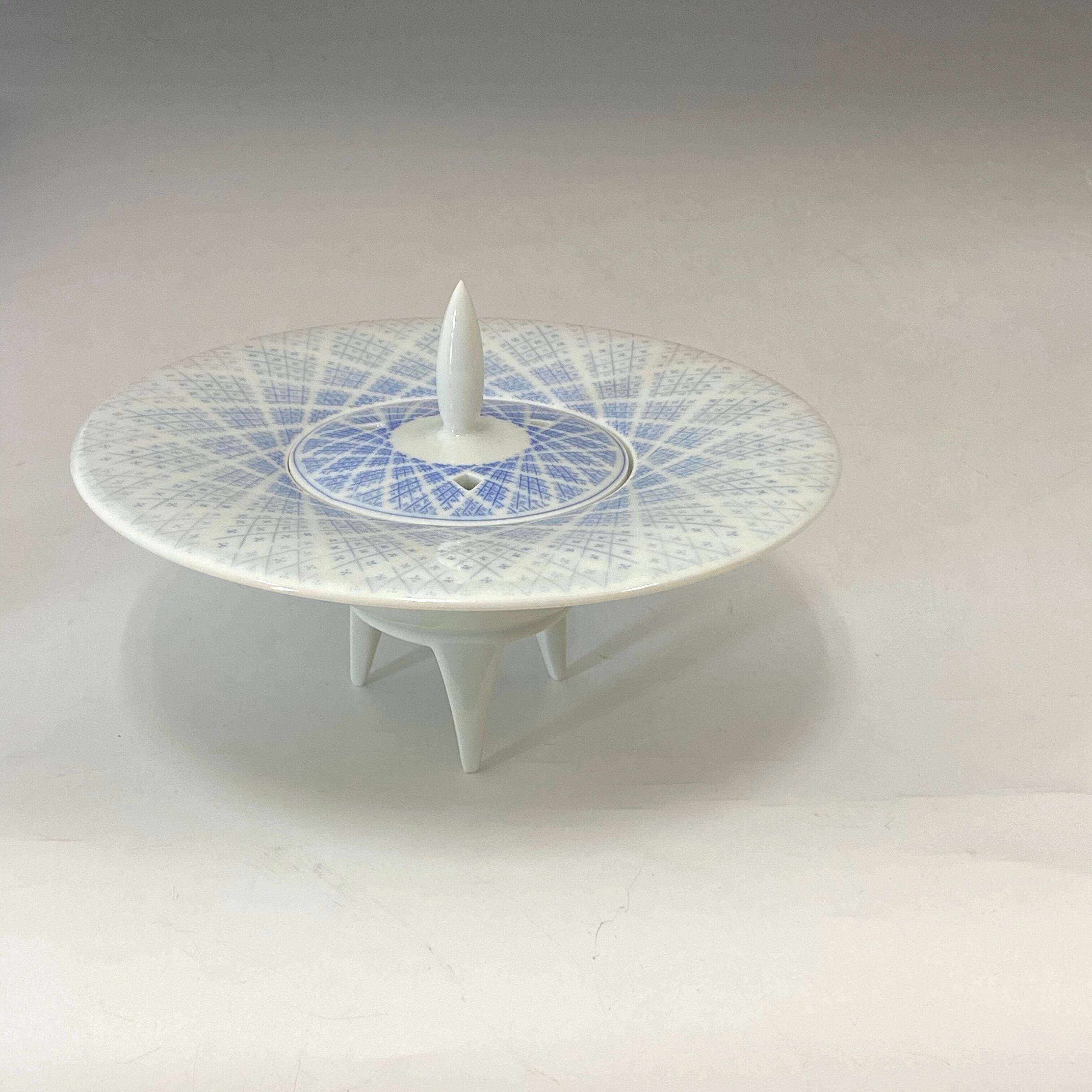 ろくろ成形後、端正な柔らかい磁肌の上に、筆では出せない繊細な線模様を出す為、極小刃物を使って切り込み模様を入れていき、顔料を埋め込んでいきます。とても繊細で緻密な手作業で作られた一点物の彩色象嵌の香炉です。