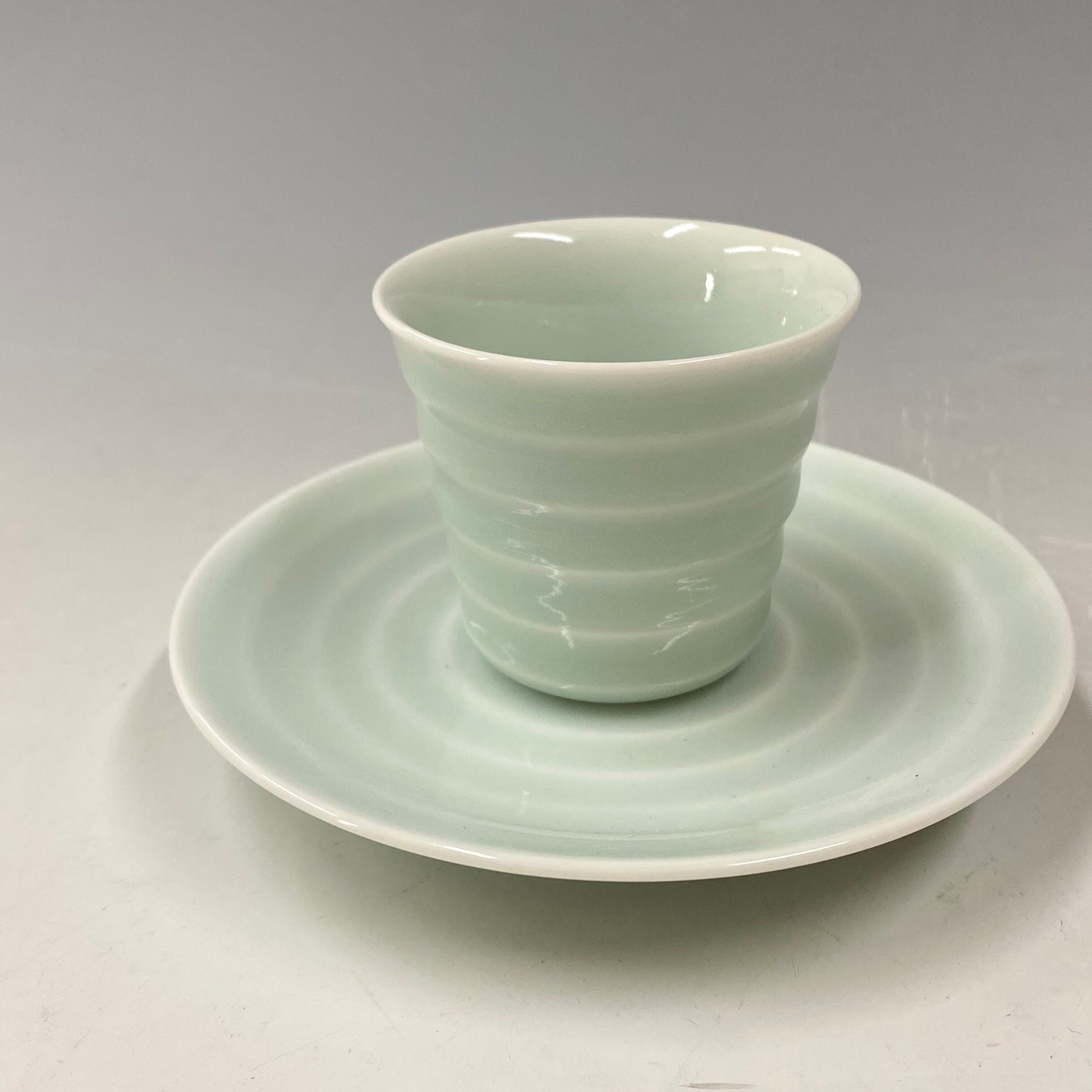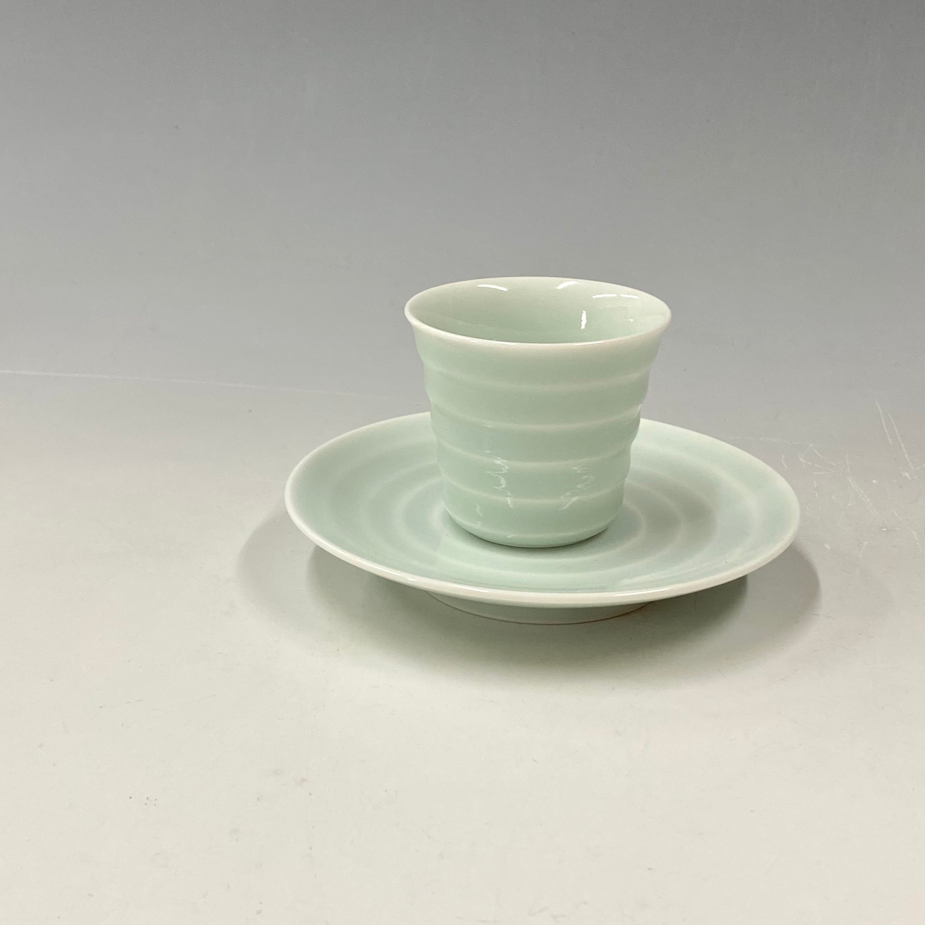 青白磁釉の色合いも美しいエスプレッソ碗皿です。