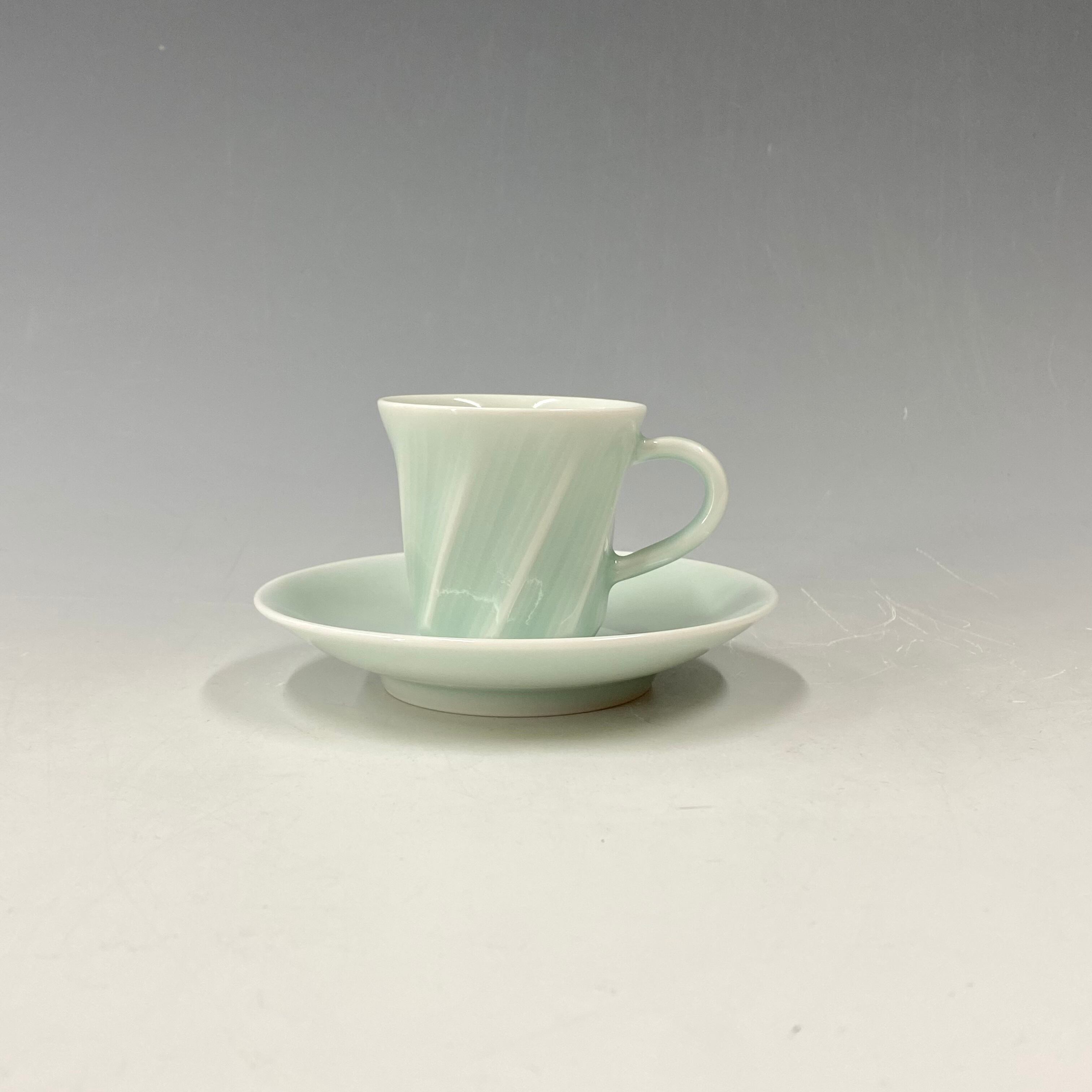 【中尾純】青白磁面取線彫エスプレッソ碗皿